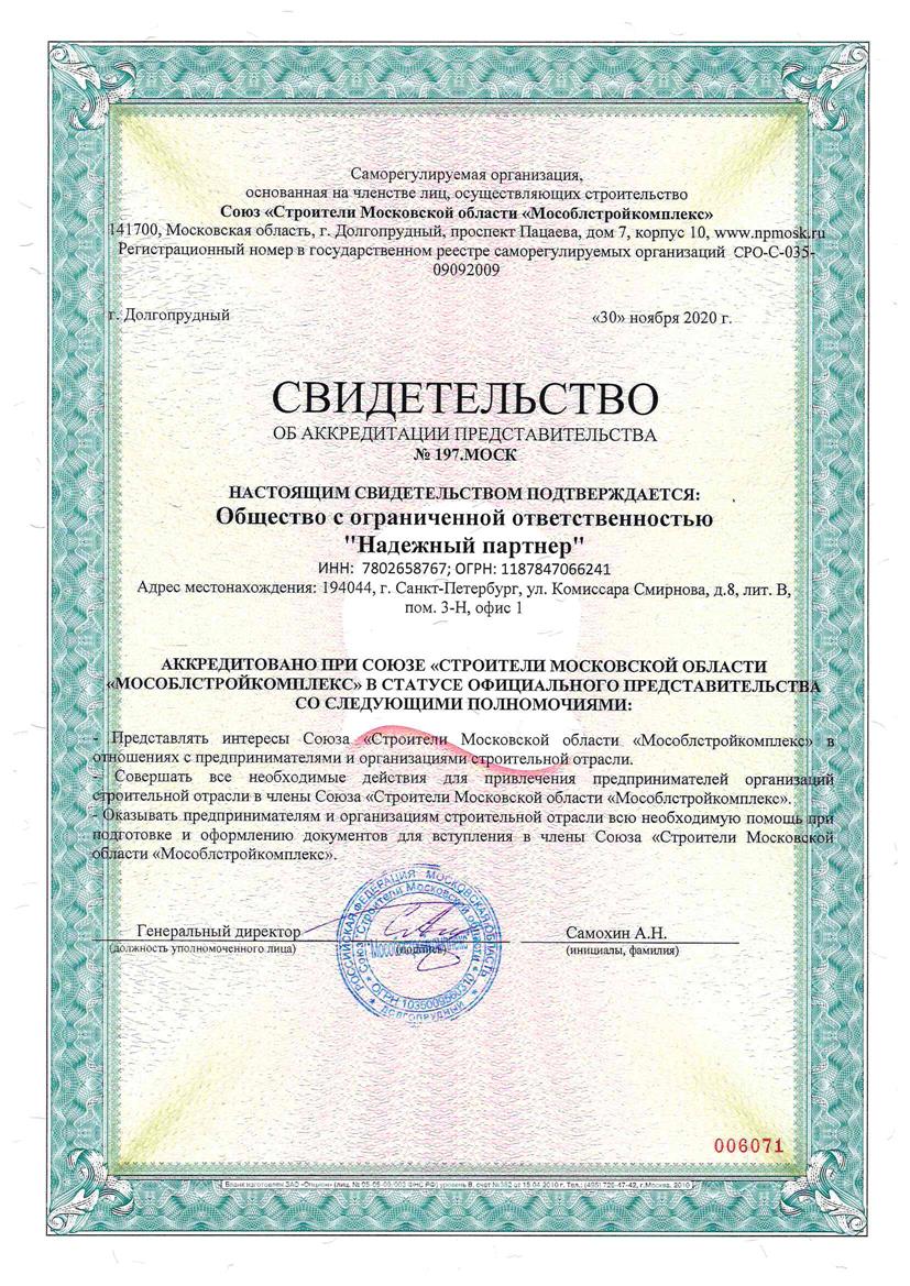 Свидетельства об акредитации в СРО